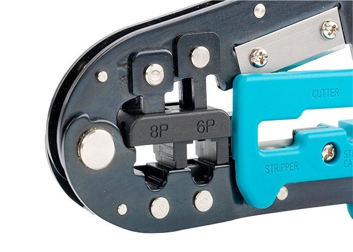 Инструмент для обжима компьютерных и телефонных клемм позволяет с легкостью обрезать провода и обжимать контактные клеммы основных типоразмеров (RJ45, RJ11/12), которые применяются при подключении компьютеров и телефонных аппаратов к сетям. Лезвия выполнены из высококачественной стали SK5. Трещоточный механизм при обжиме контактных клемм позволяет производить операцию "до окончательного обжима".