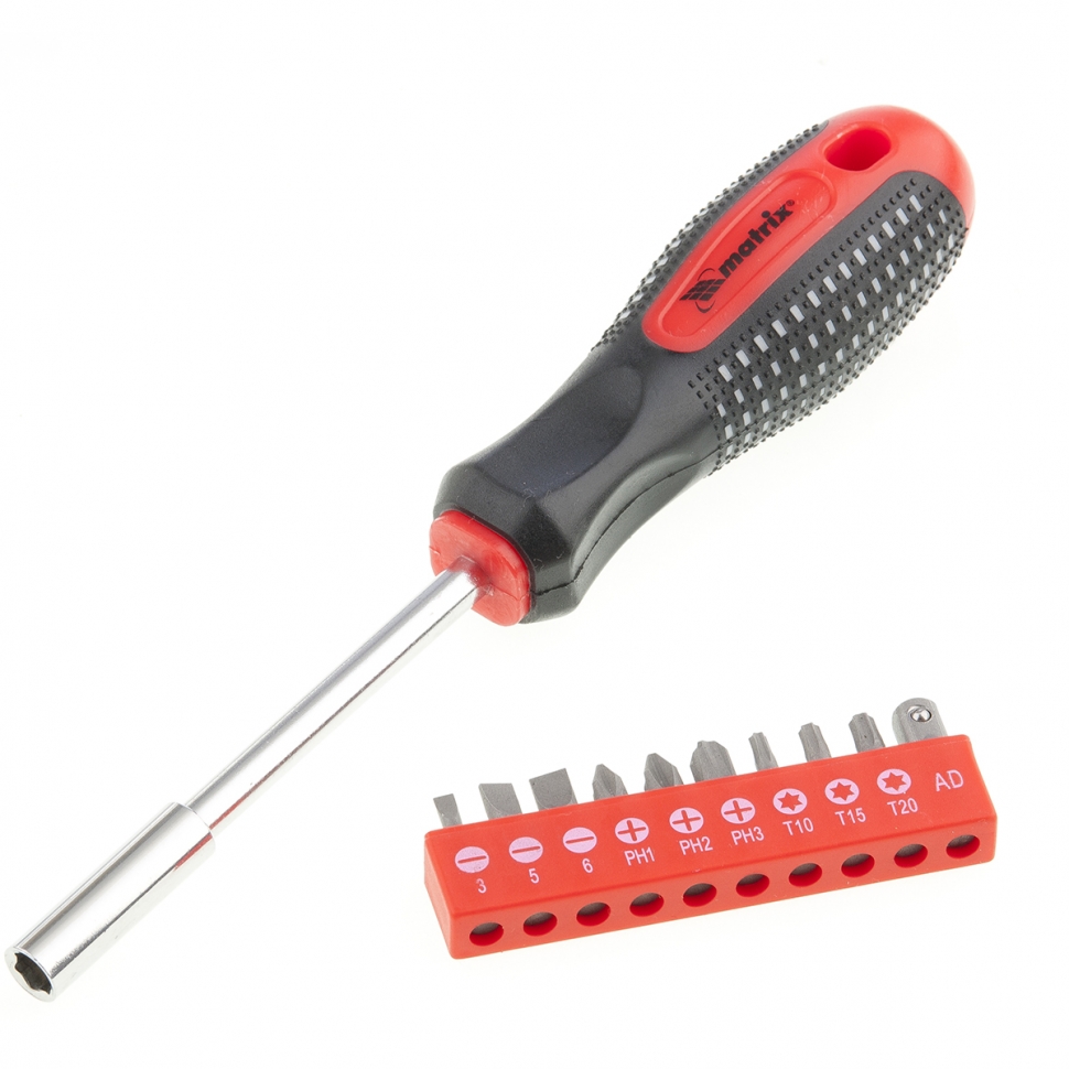 Отвертка с набором бит,10шт, Fusion, CrV, 3-х компонентная рукоятка "anti slip" MATRIX