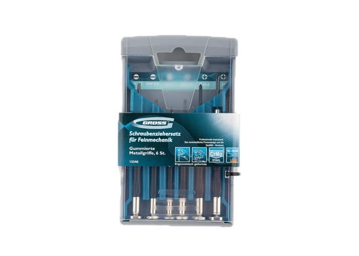 Профессиональный набор отверток торговой марки GROSS предназначен для завинчивания и отвинчивания резьбовых соединений маленького размера.