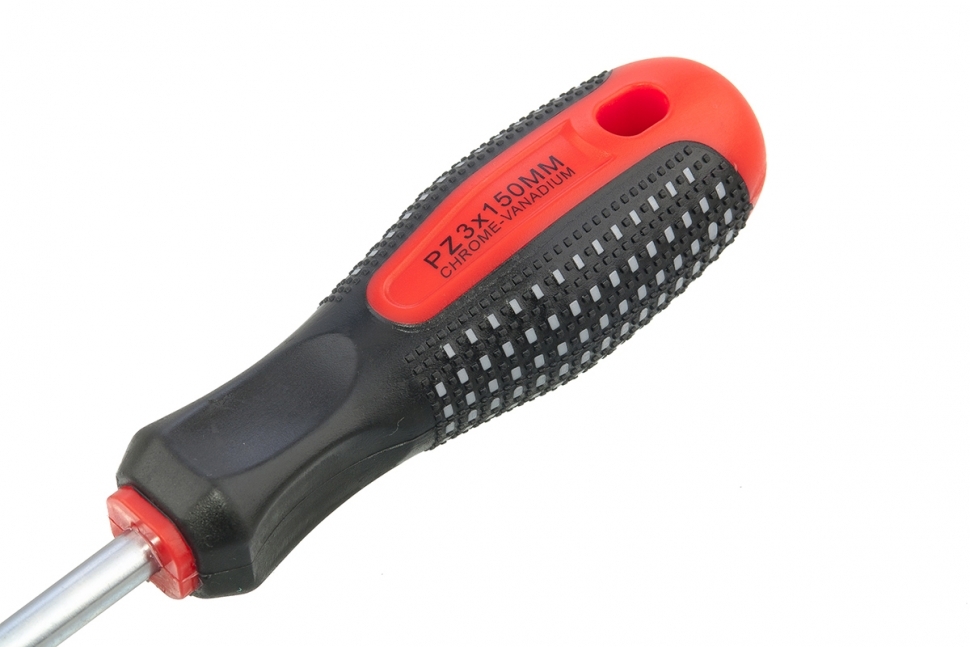 Жало отвертки изготовлено из легированной стали (CrV), прошедшей термообработку. Эргономичная трехкомпонентная рукоятка antislip обеспечивает удобный захват и эффективное вращение отвертки.