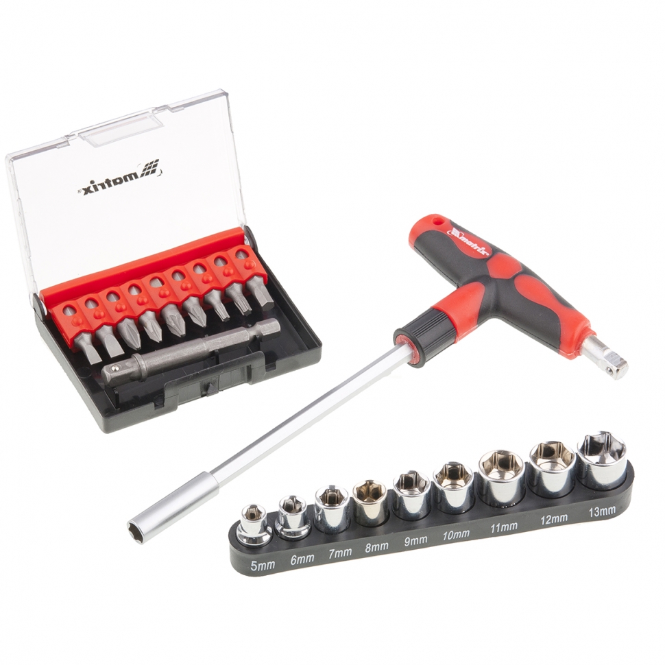 Отвертка предназначена для монтажа и демонтажа резьбовых соединений. Оснащена двухкомпанентной противоскользящей Т-образной рукояткой и хромированным стержнем. Т-образная ручка инструмента удобна для работы с усилием. Насадки изготовлены из хромованадиевой стали. В комплект к отвертке входят 19 насадок: