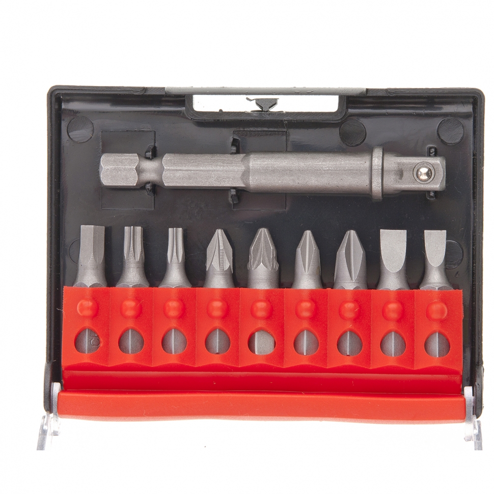 Головки торцевые 1/4" - 5, 6, 7, 8, 9, 10, 11, 12, 13. Биты РН1; РН2; РZ1; РZ2;SL4; SL5; T15; T20;H4; H5. Переходник 1/4" 1 шт.