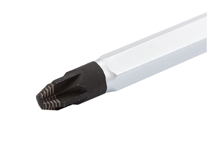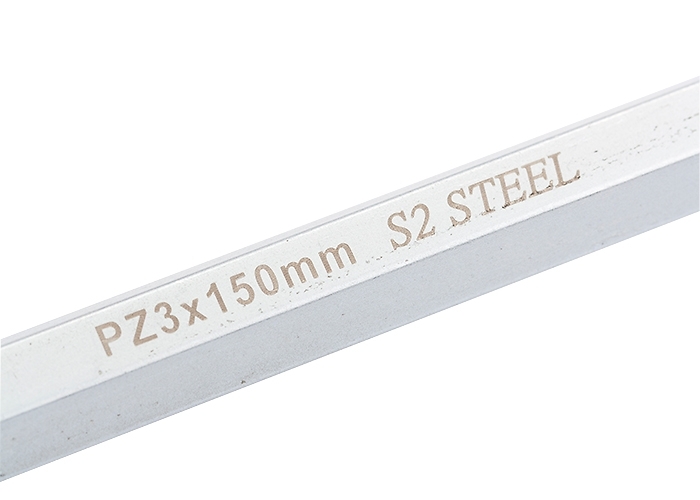Отвертка торговой марки GROSS изготовлена из высококачественной инструментальной стали S2. Предназначена отвертка для монтажа/демонтажа резьбовых соединений с крестообразным типом шлица и дополнительными направляющими (PZ3). Насечки на жале увеличивают трение между отверткой и шлицом крепежа, что исключает возможность повреждения шлица. На стержень отвертки длиной 150 мм нанесено хромовое защитное покрытие, которое защищает металл от коррозии. Трехкомпонентная рукоятка длиной 119 мм, имеющая запатентованную форму, удобно и надежно фиксируется в руке. Твердость рабочих частей отвертки (стержень, рукоятка) составляет 56 HRC, максимально крутящий момент затяжки — 19,5 H*m. Снабжена отвертка подвесной картой, удобной для размещения инструмента на стенде.