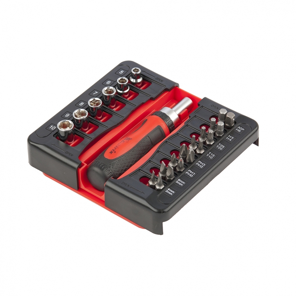 Каждый набор включает в себя отвертку с реверсивным механизмом, повышающим комфорт и скорость выполнения работы.