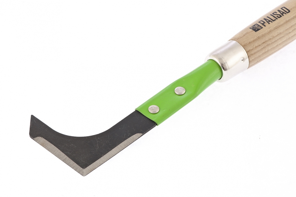 Предназначен для подрезки сорняков вдоль бордюров, клумб, заборчиков. Рабочая часть выполнена из инструментальной стали У8, остро заточена и оксидирована для предохранения от коррозии. Рукоятка выполнена из вяза и для защиты пропитана маслом.